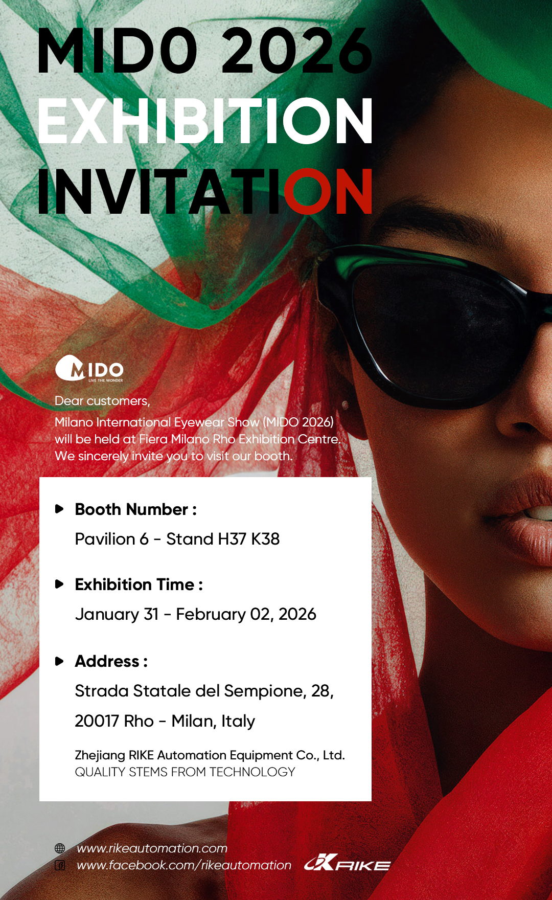 Zhejiang RIKE Automation Equipment Co., Ltd. warmly invites you to join us at the Milano International Eyewear Show (MIDO 2026), held at the Fiera Milano Rho Exhibition Centre.